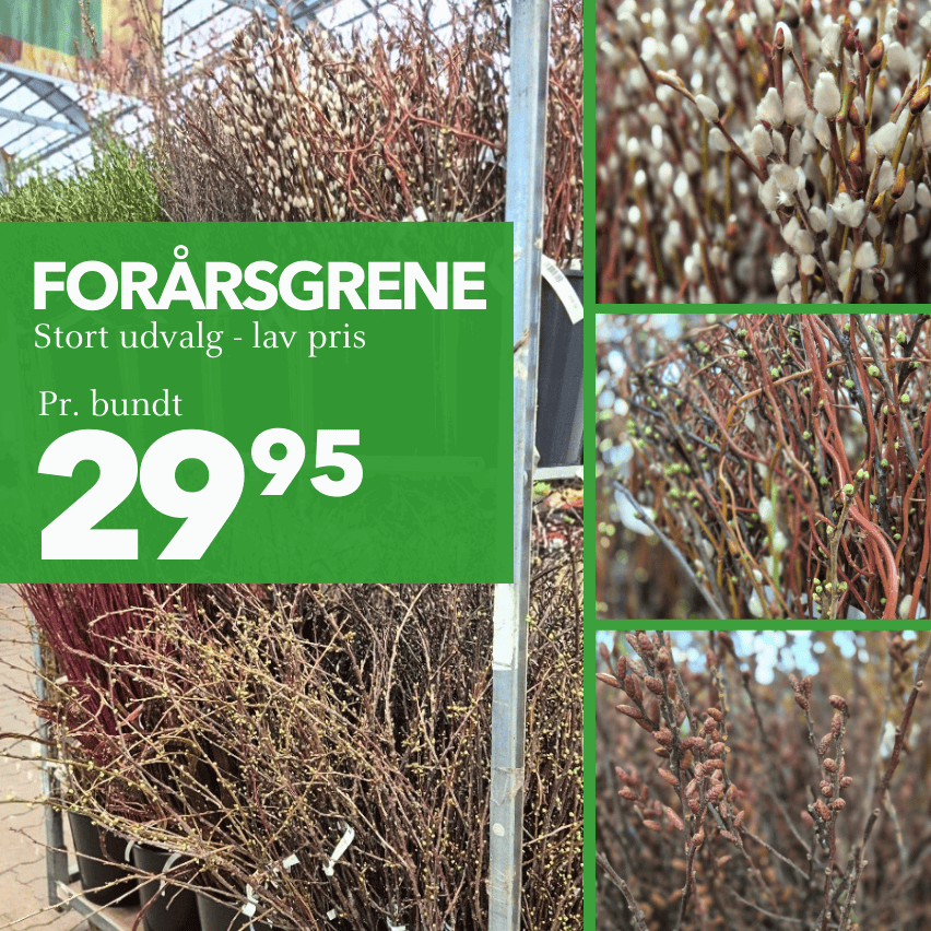 Kan du mærke foråret lige om hjørnet? Nej ikke rigtig. Med et stort udvalg af afskårne grene inviterer vi foråret ind i din stue. Køb dem i din Billigblomst.